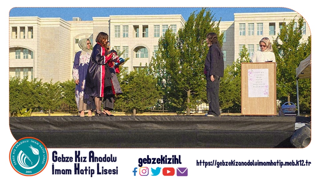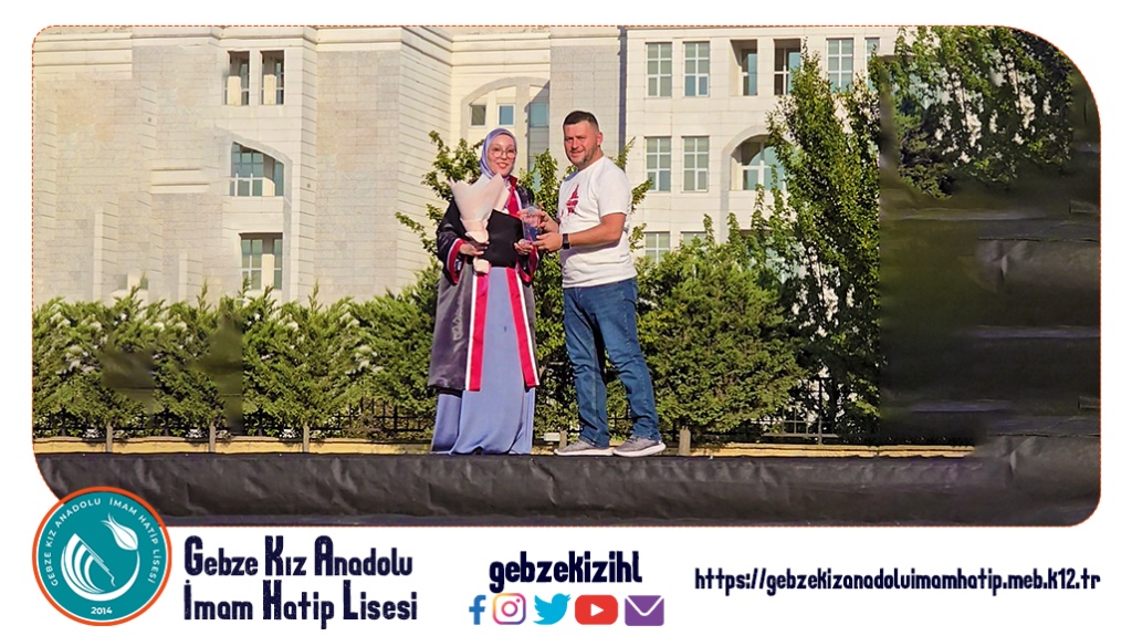 Proje Sınıfı 12PC öğrencilerimizden Zennure Sert okul birincimiz olurken, İmam Hatip alanı birincimiz olarak da 12G öğrencilerimizden Büşragül Çiftçi kürsüye çıktı. Okul birincimiz Zennure Sert'in plaketini Müdür Başyardımcımız Engin Güntepe takdim ederken, İmam Hatip alanı birincimiz Büşragül Çiftçi'nin plaketini ise Müdür Yardımcımız Göksu Demiral verdi.